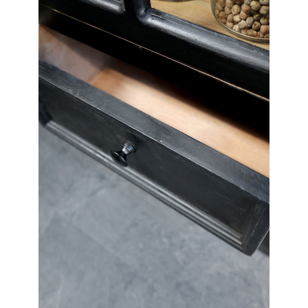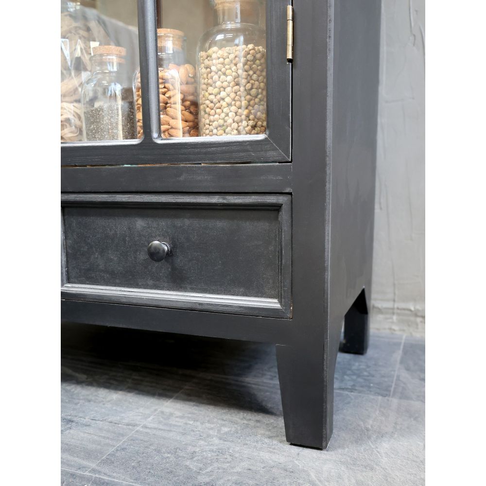 Beautiful display cabinet in a classic look, with a bit of edge from the stunning antique black finish.