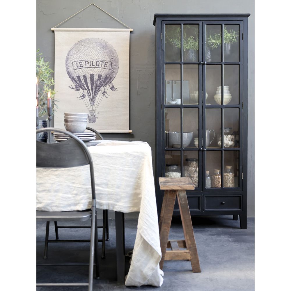 The display cabinet has its natural wood colour on the inside, which creates a lovely contrast. Behind the two glass doors are four shelves, and underneath you will find two spacious drawers.